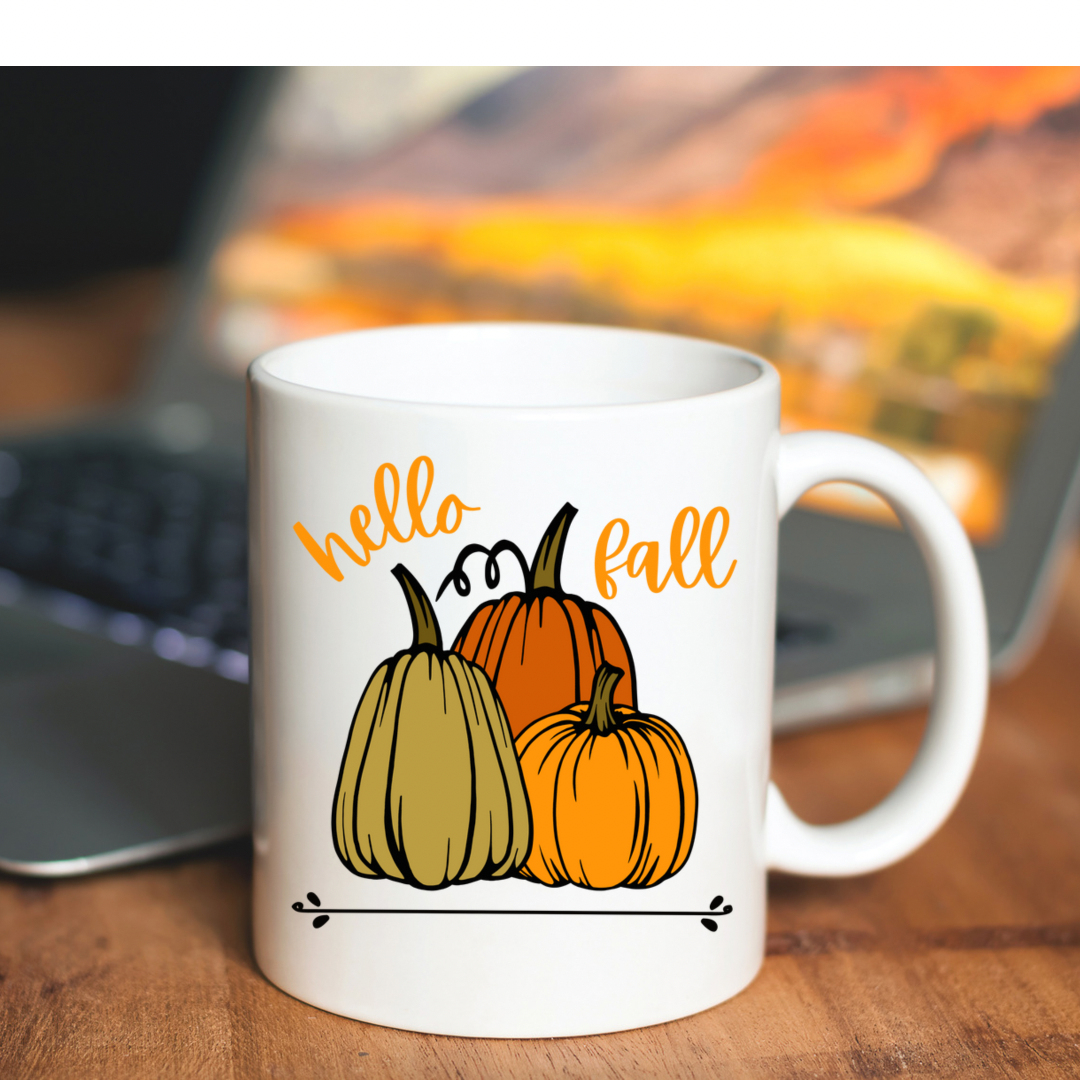 Hello Fall Pumpkin Mug. Designed by Stardust & Moonstone, printed by professionals - All of our designs are completely customizable. Reach out to us to change colors, wording, etc.! Please keep in mind that colors may vary between screens.
