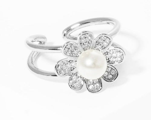 White Gold Dipped CZ Flower Acrylic Pearl