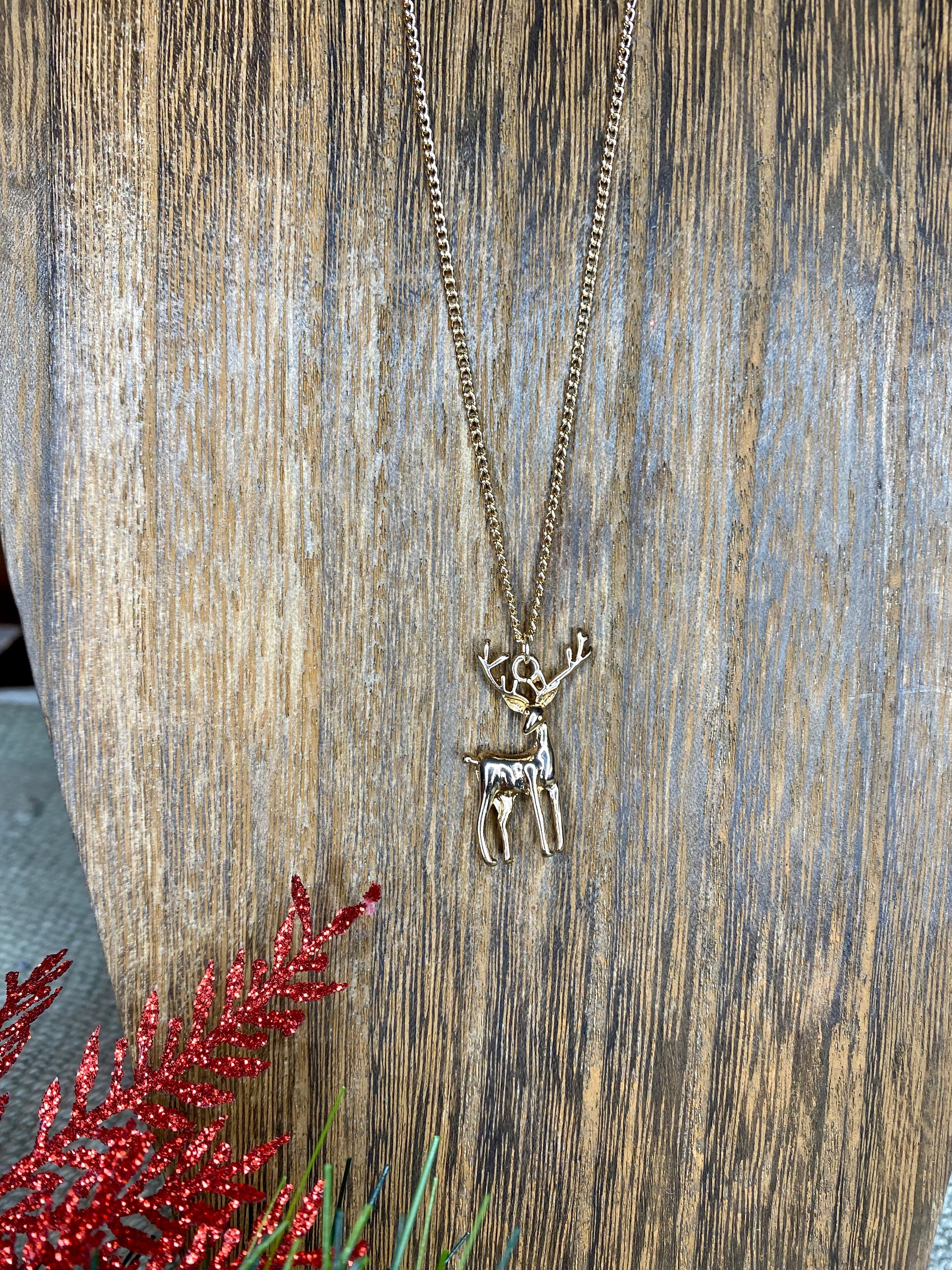 Golden Reindeer Long Necklace