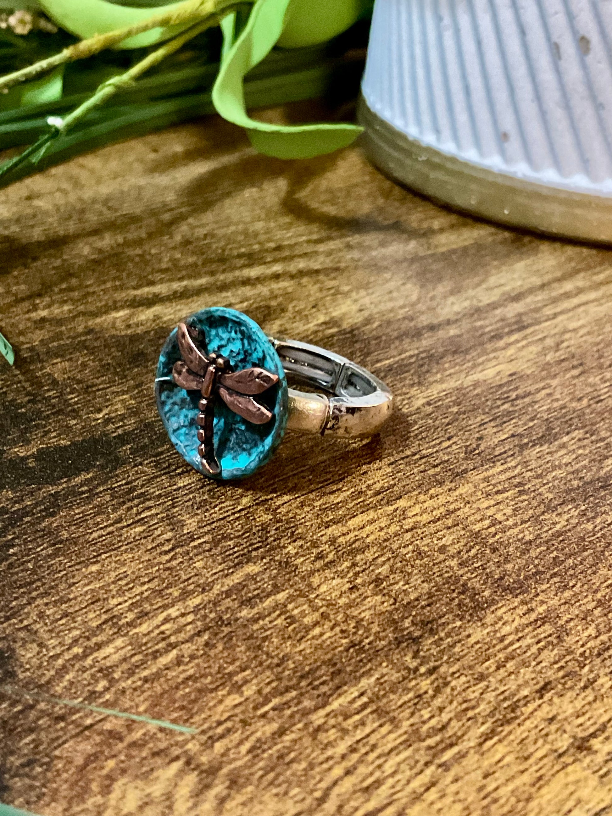 Introducing the Vintage Metal Dragonfly Ring, featuring a stretch band for a comfortable and adjustable fit. Made with high-quality metal, this ring boasts a 3/4 inch dragonfly design. Bring a touch of nature to your outfit while adding a unique and versatile accessory to your collection.
