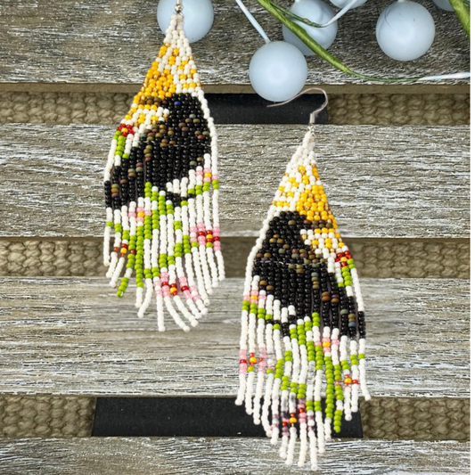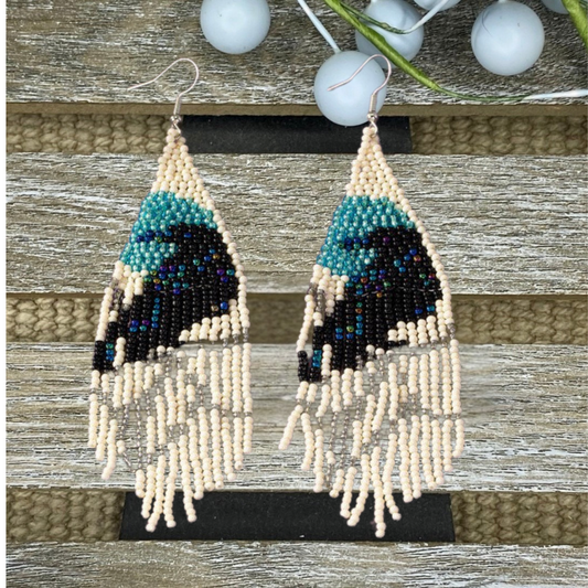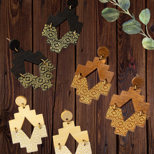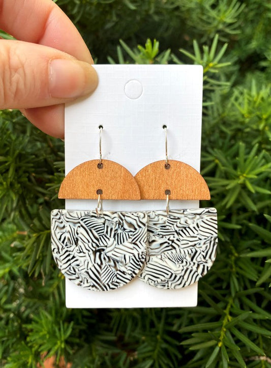 Organic Disc and Ring Wood Drop Earrings Black and Blue Design