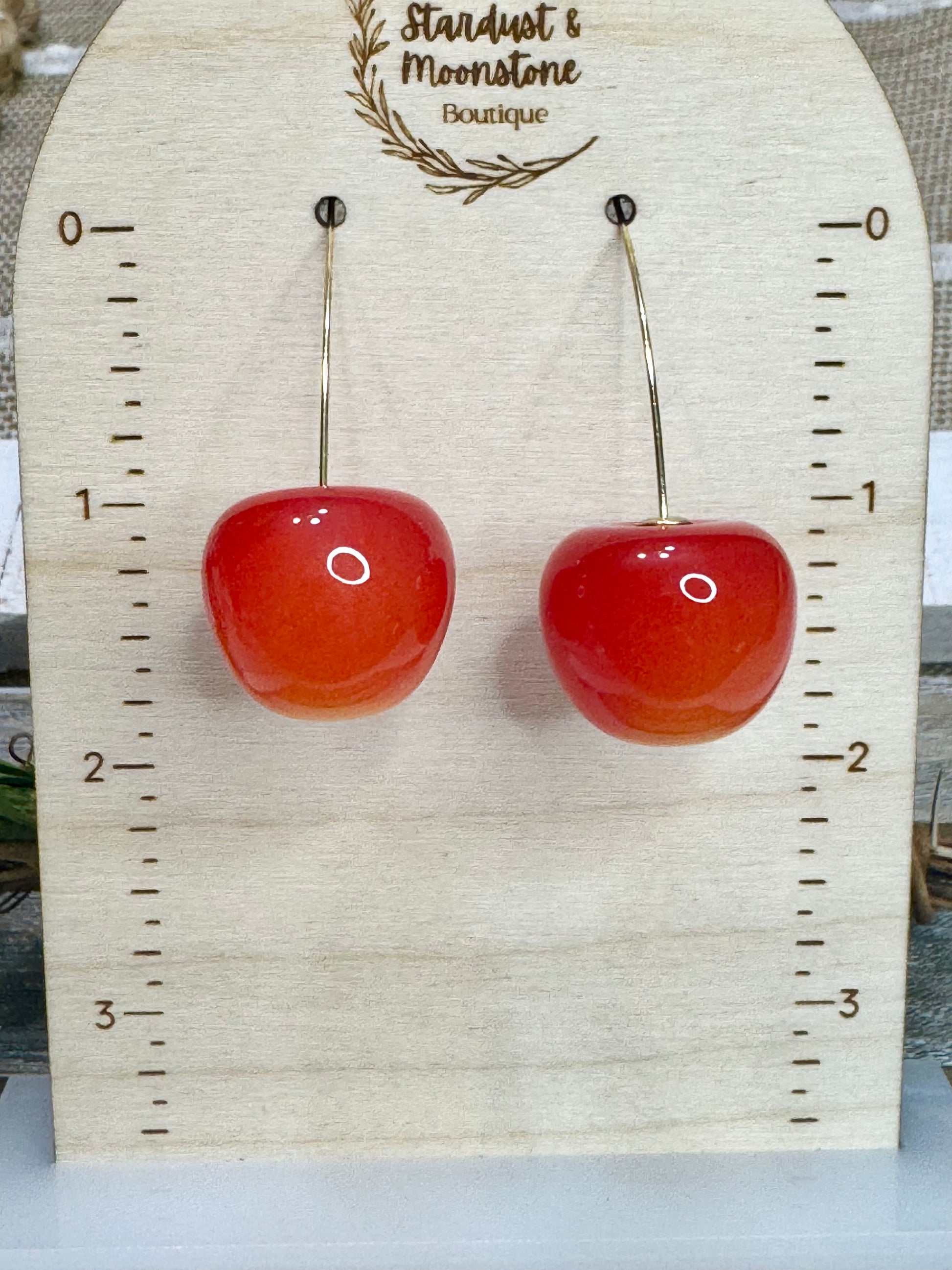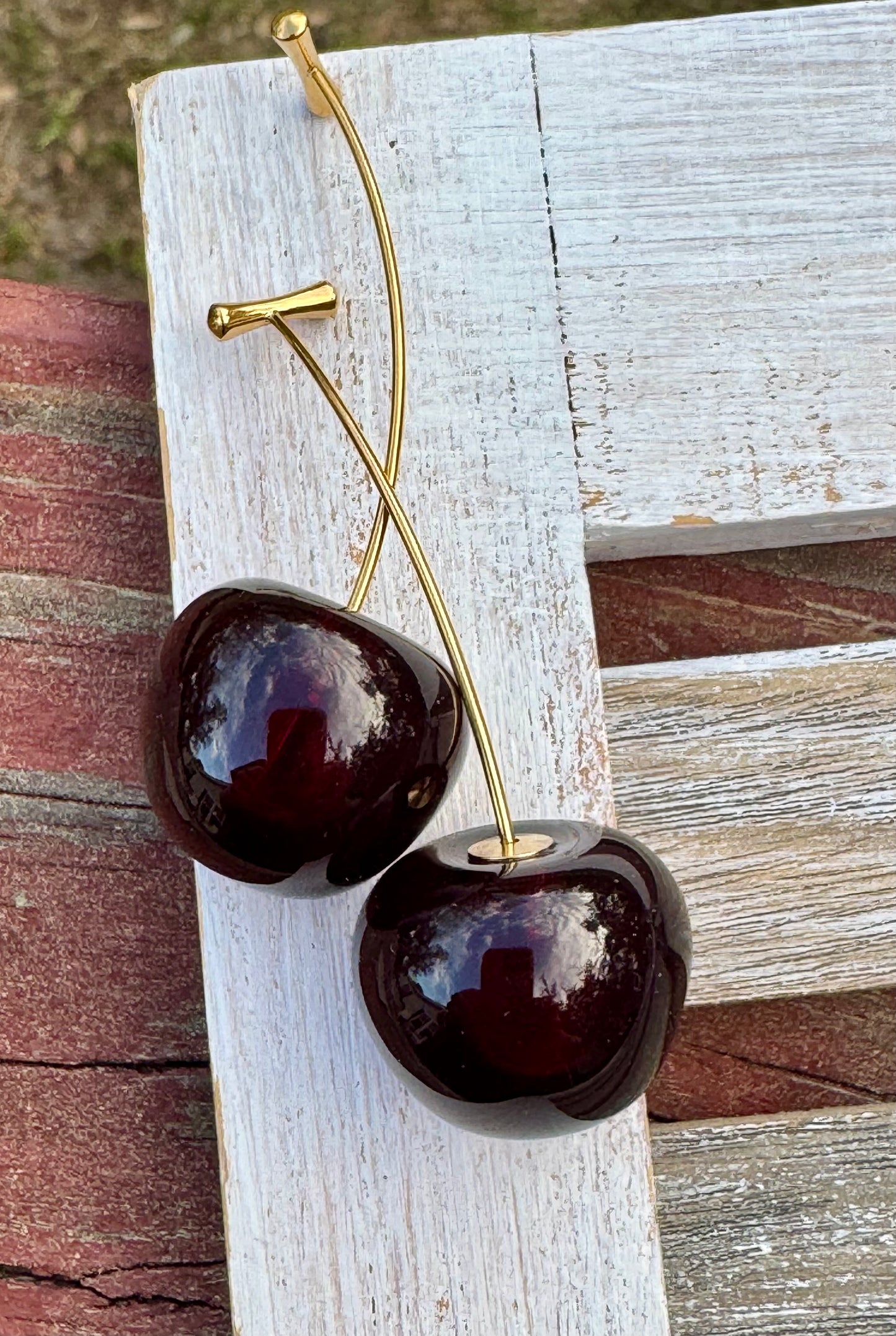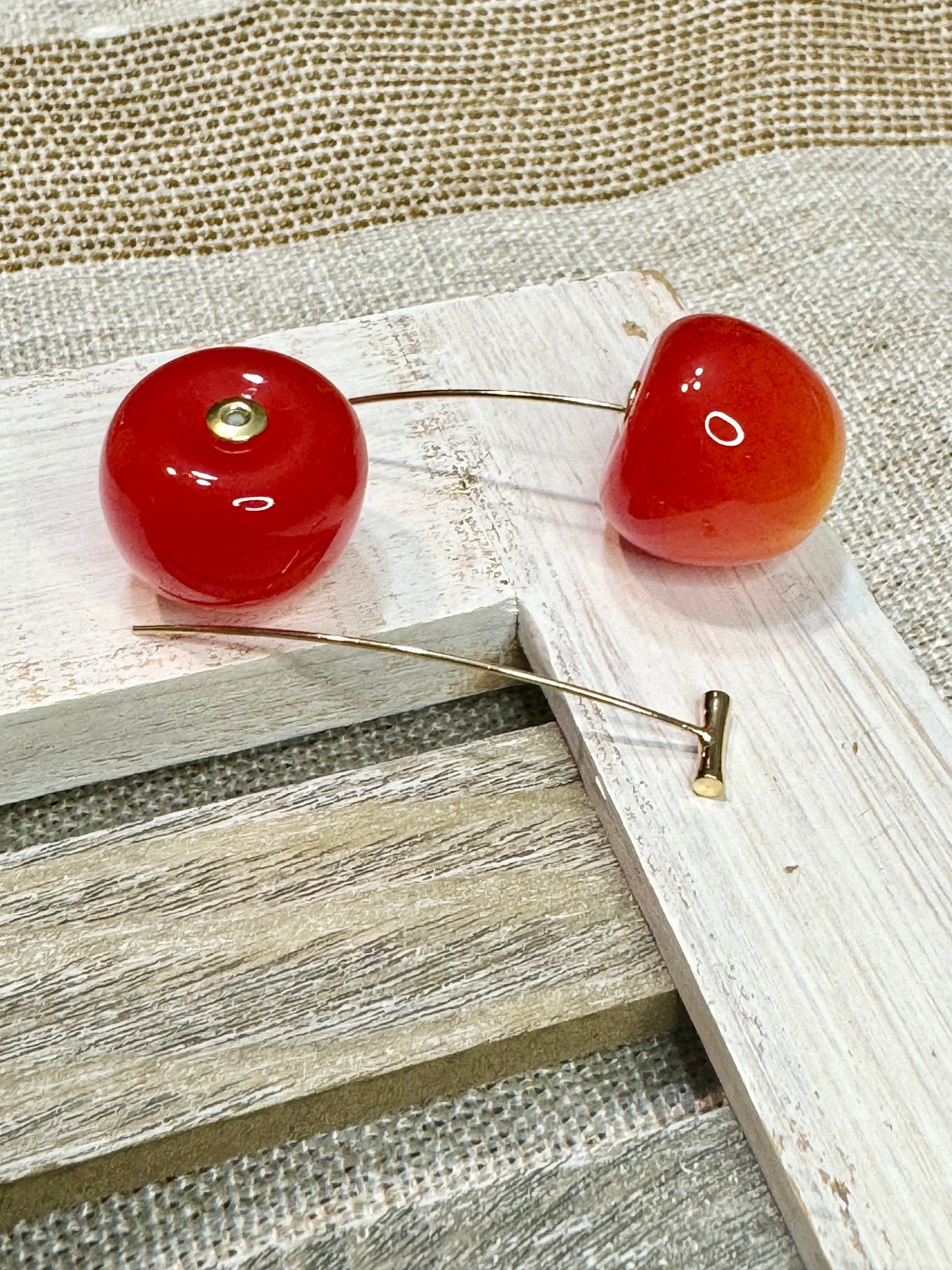 Add a touch of sweetness to your look with these elegant Cherry Drop Earrings. Made with gold thread posts, these earrings are the perfect accessory for any outfit. Let the charming cherry design add a unique flair to your style.
