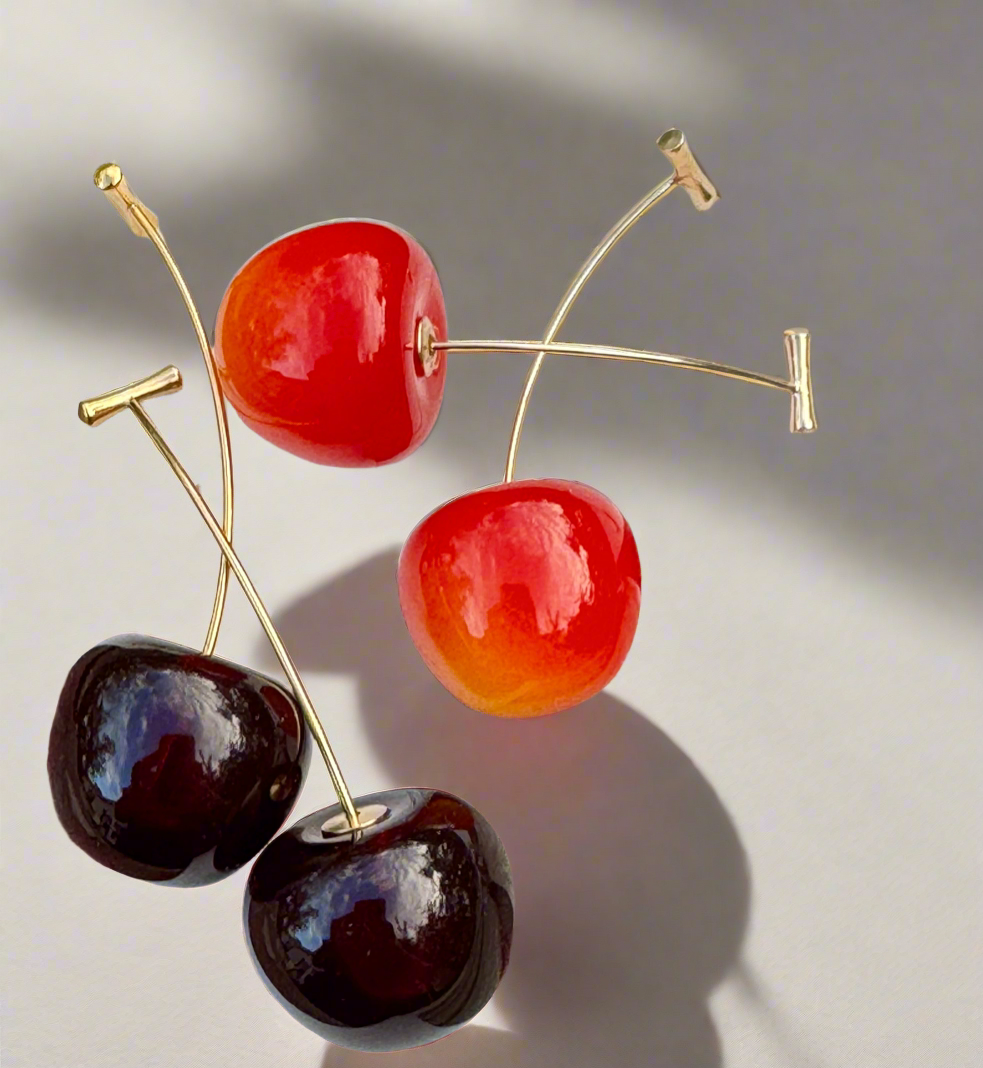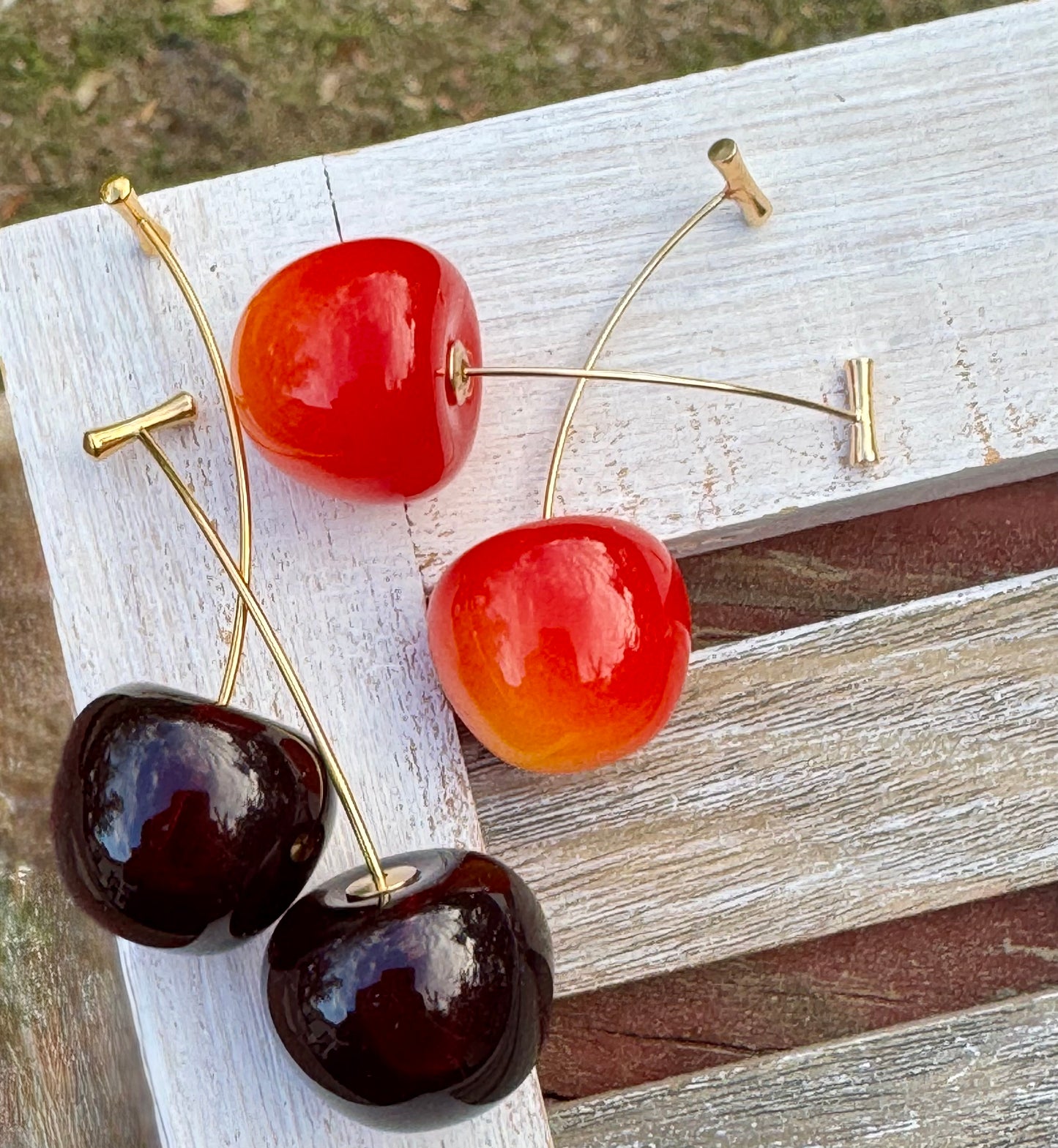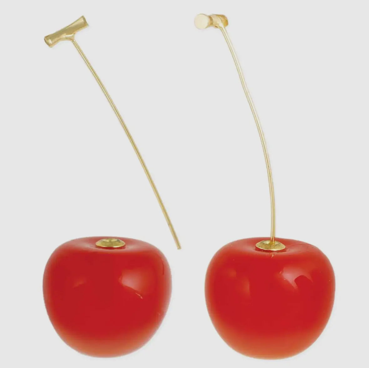 Add a touch of sweetness to your look with these elegant Cherry Drop Earrings. Made with gold thread posts, these earrings are the perfect accessory for any outfit. Let the charming cherry design add a unique flair to your style.
