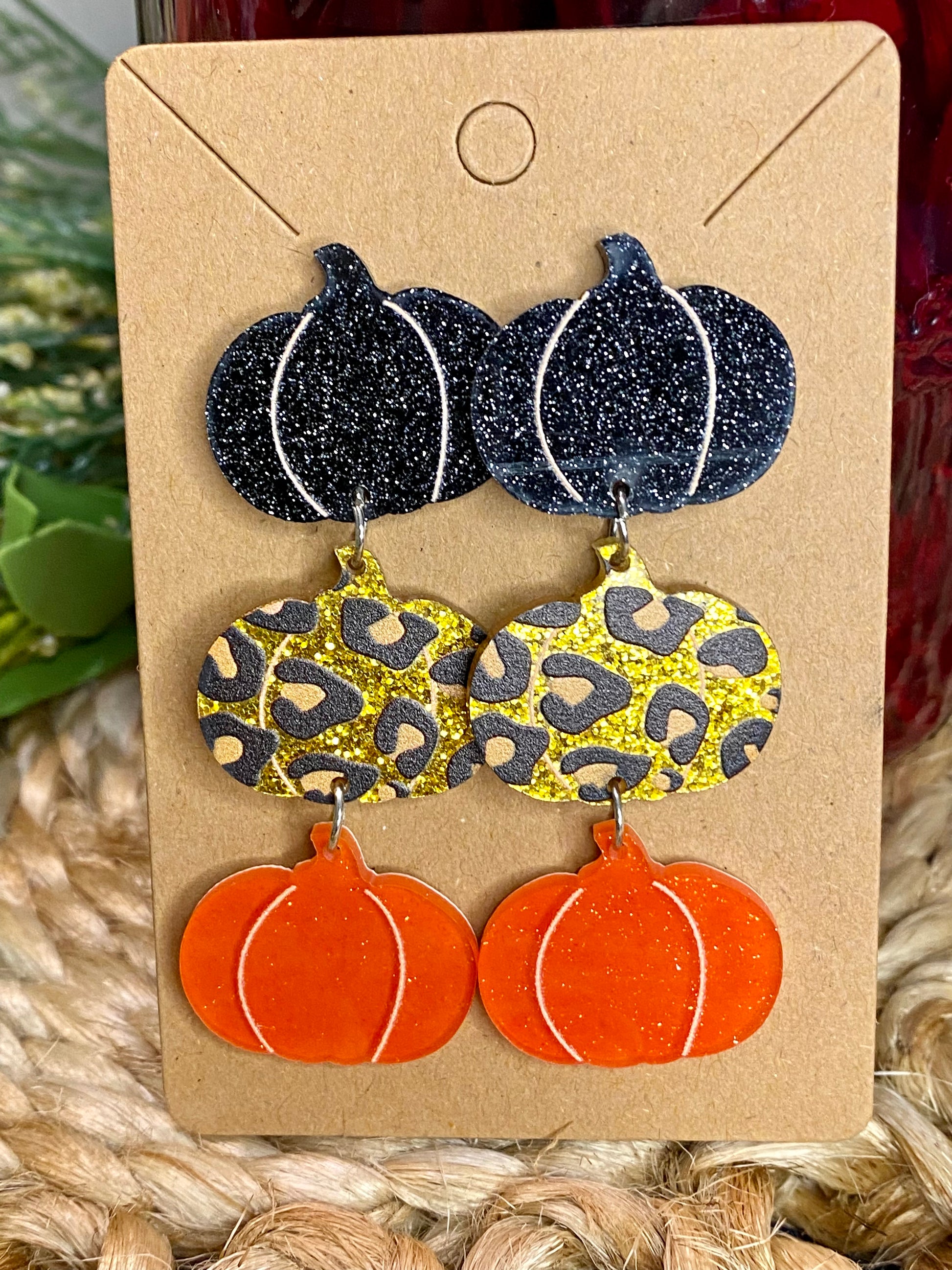 Fall Earrings - Glittery Pumpkin Stack