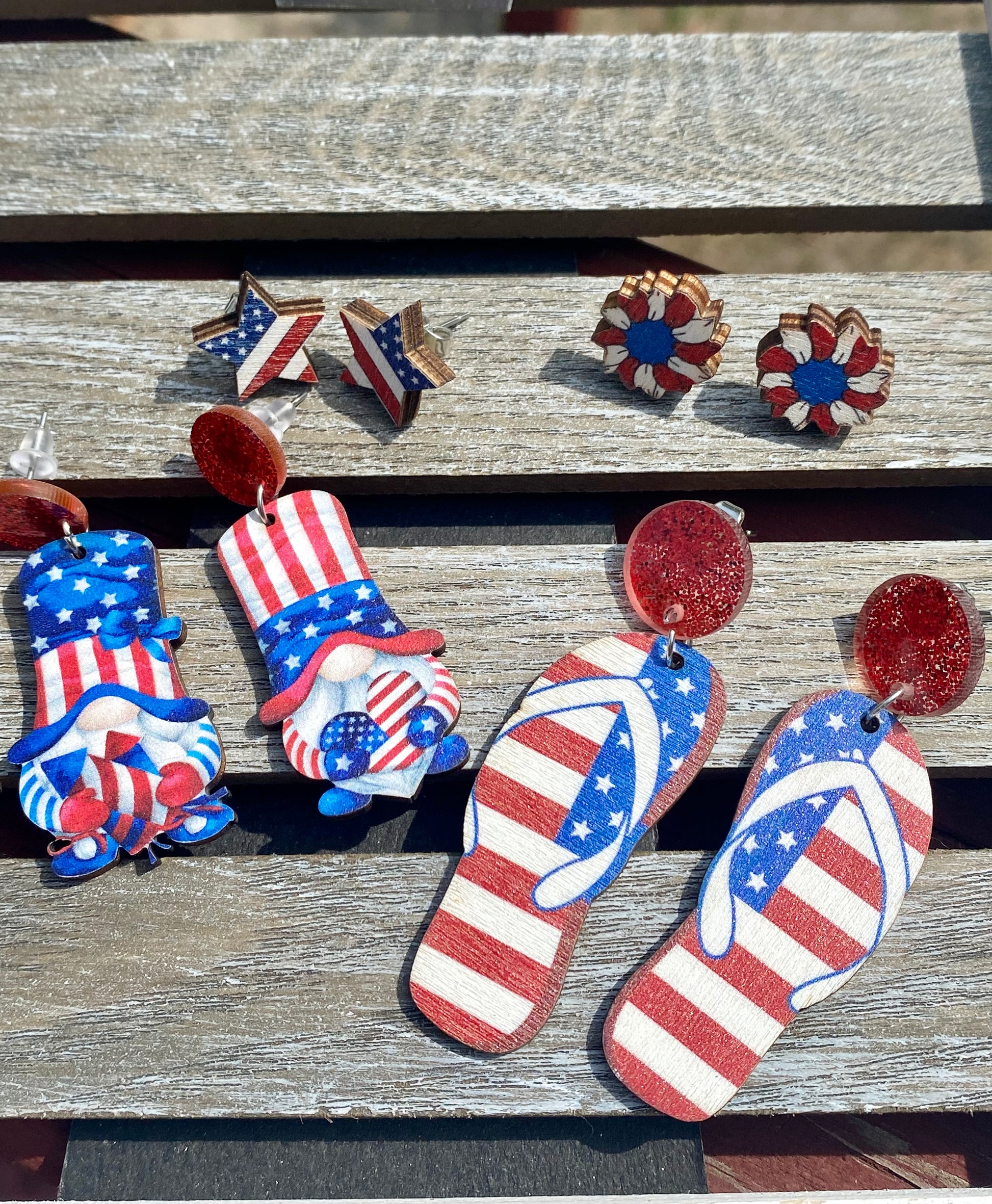These lightweight, patriotic wooden earrings come in assorted red, white, and blue designs. Add a festive touch with these must-have-for-summer earrings!