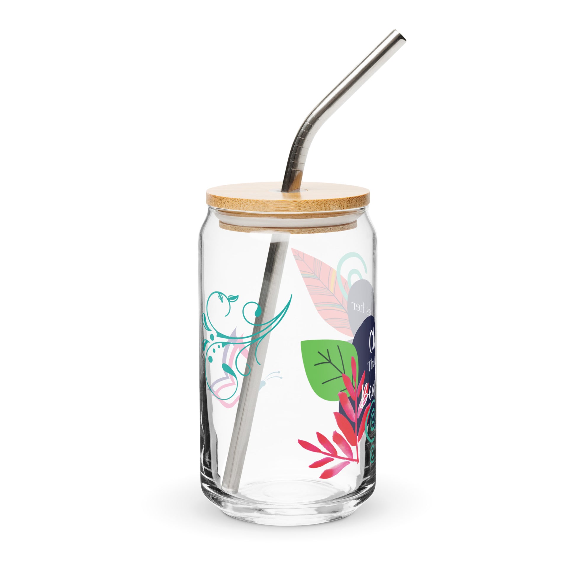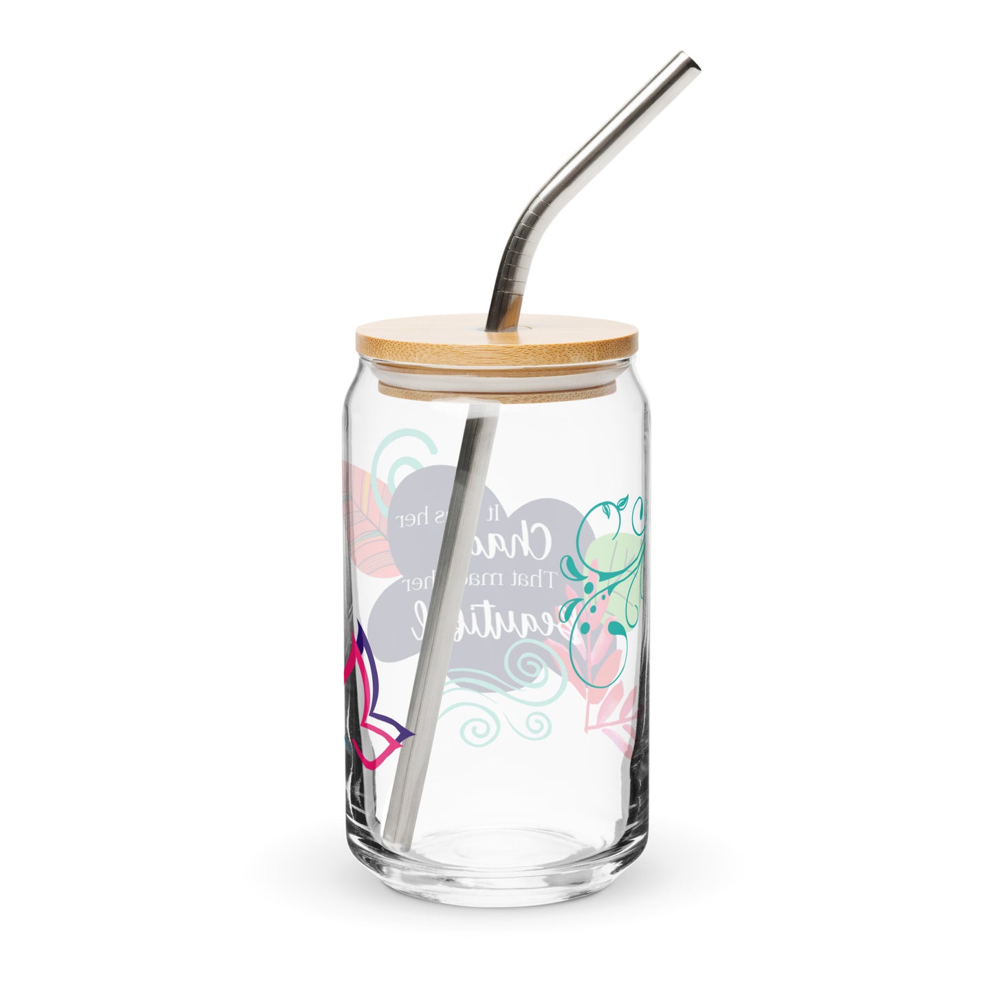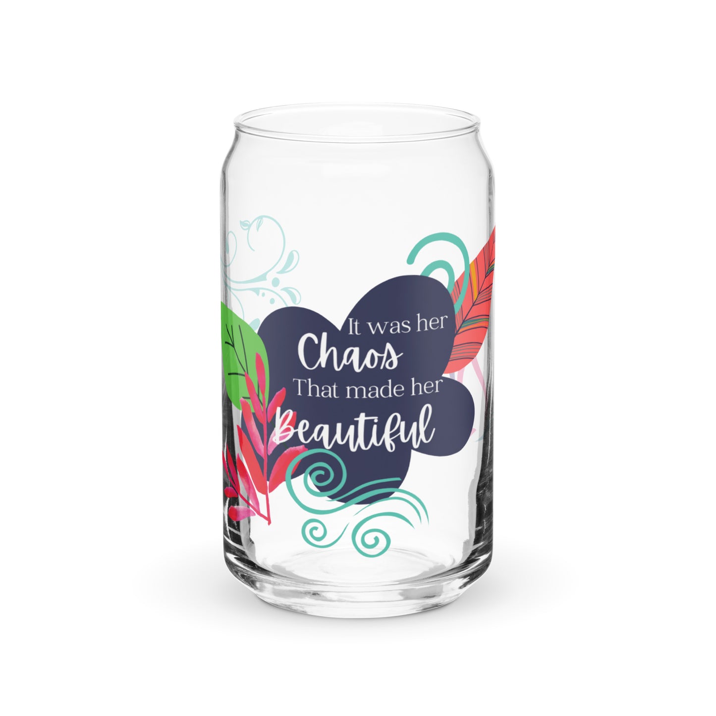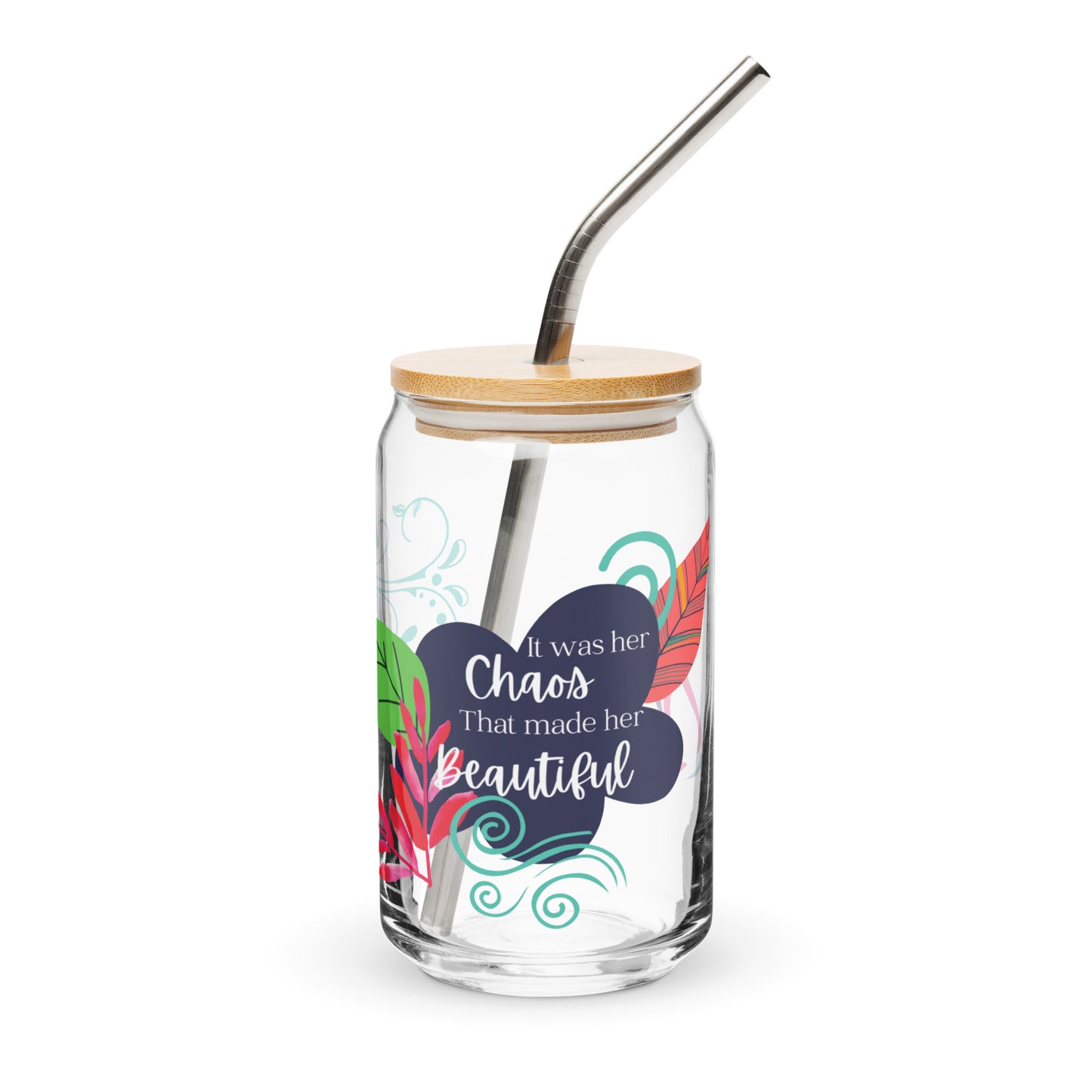 Chaos Quote Glass tumbler with optional bamboo lid and straw