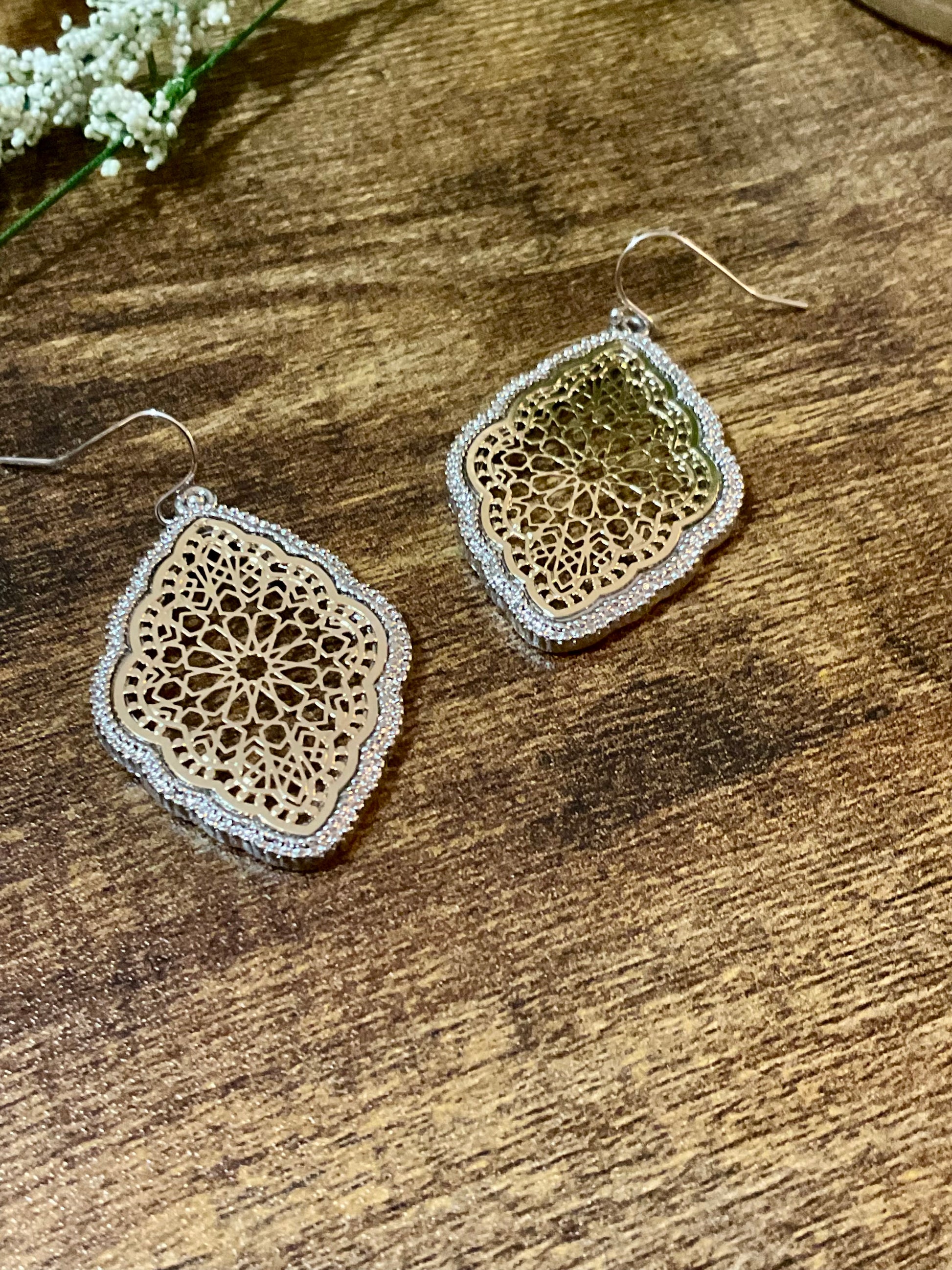 Expertly crafted with intricate filigree detailing, these two-tone metal earrings exude elegance and sophistication. The combination of metals adds a unique touch to any outfit, making them a versatile and stylish addition to your jewelry collection. Elevate your look with these beautiful earrings.
